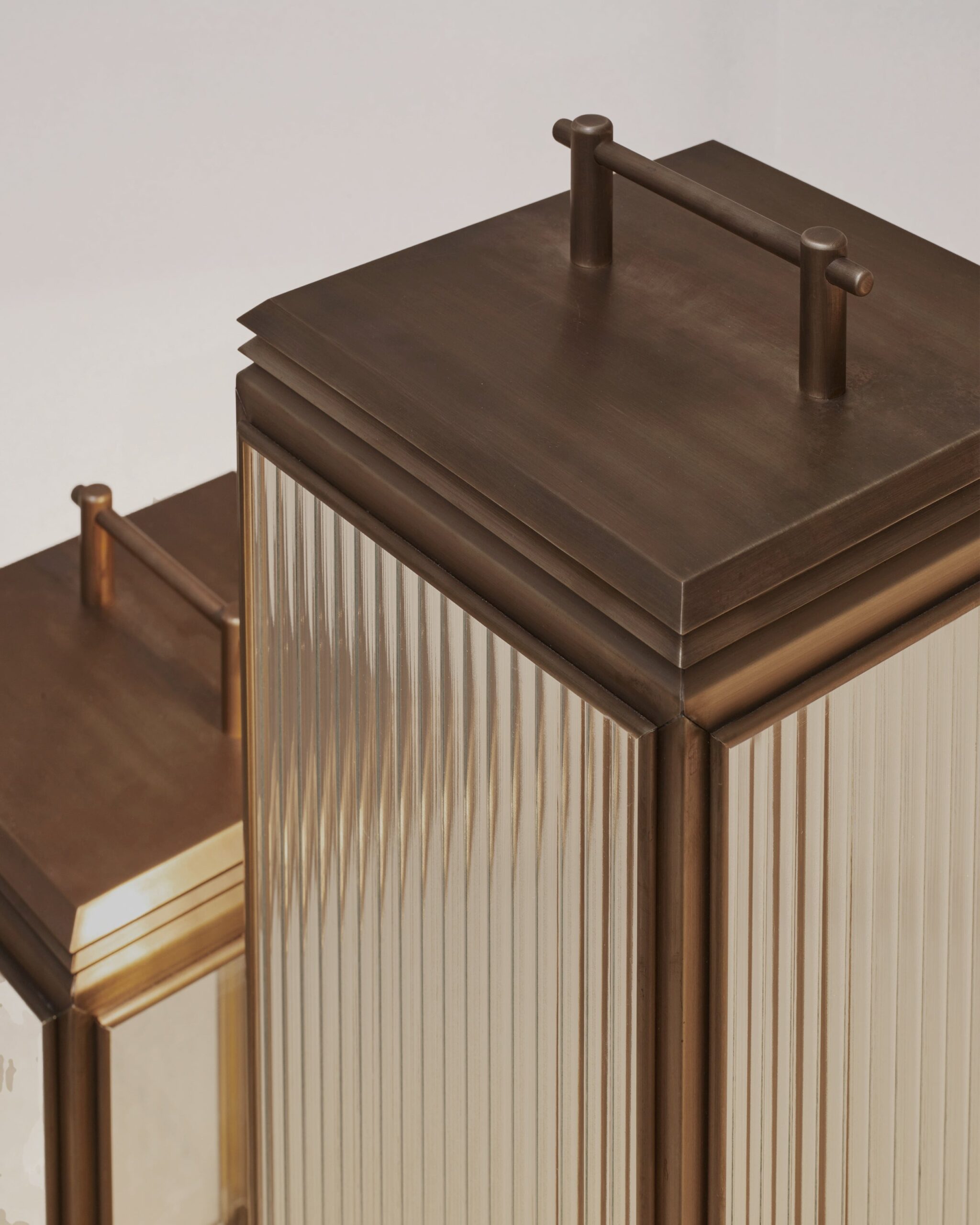 A meticulously crafted floor lantern in bronze or antique brass, the Hazel Tall Floor balances linear form with diffused light, bringing a sense of refinement.