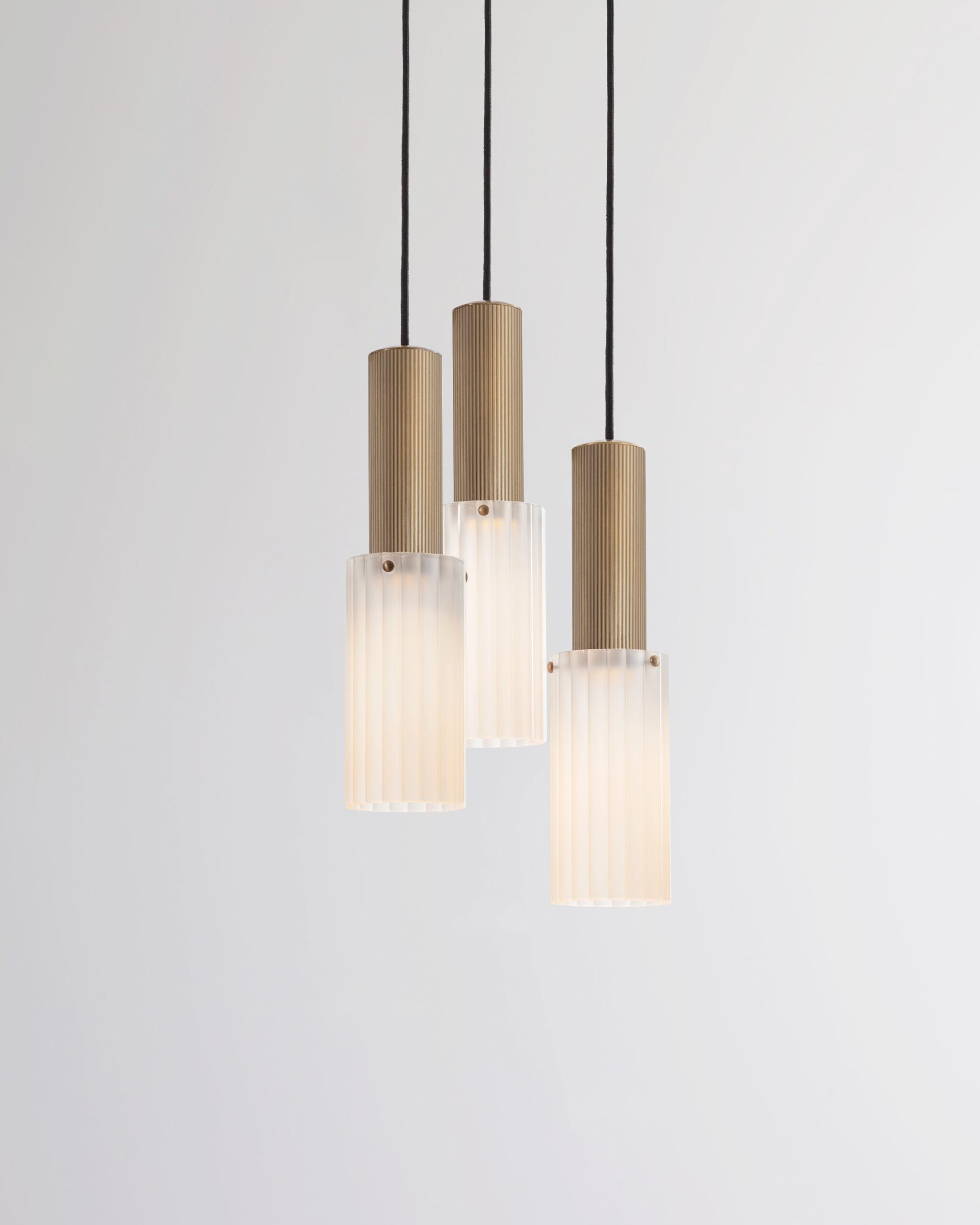 A bold triple grouping of the Flume 80 Pendant, where refined design and light refraction converge to craft a captivating, intimate atmosphere.