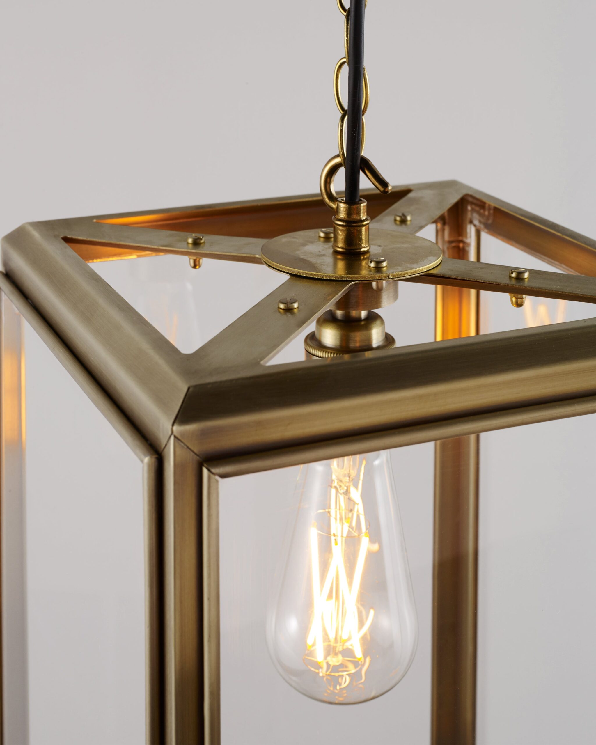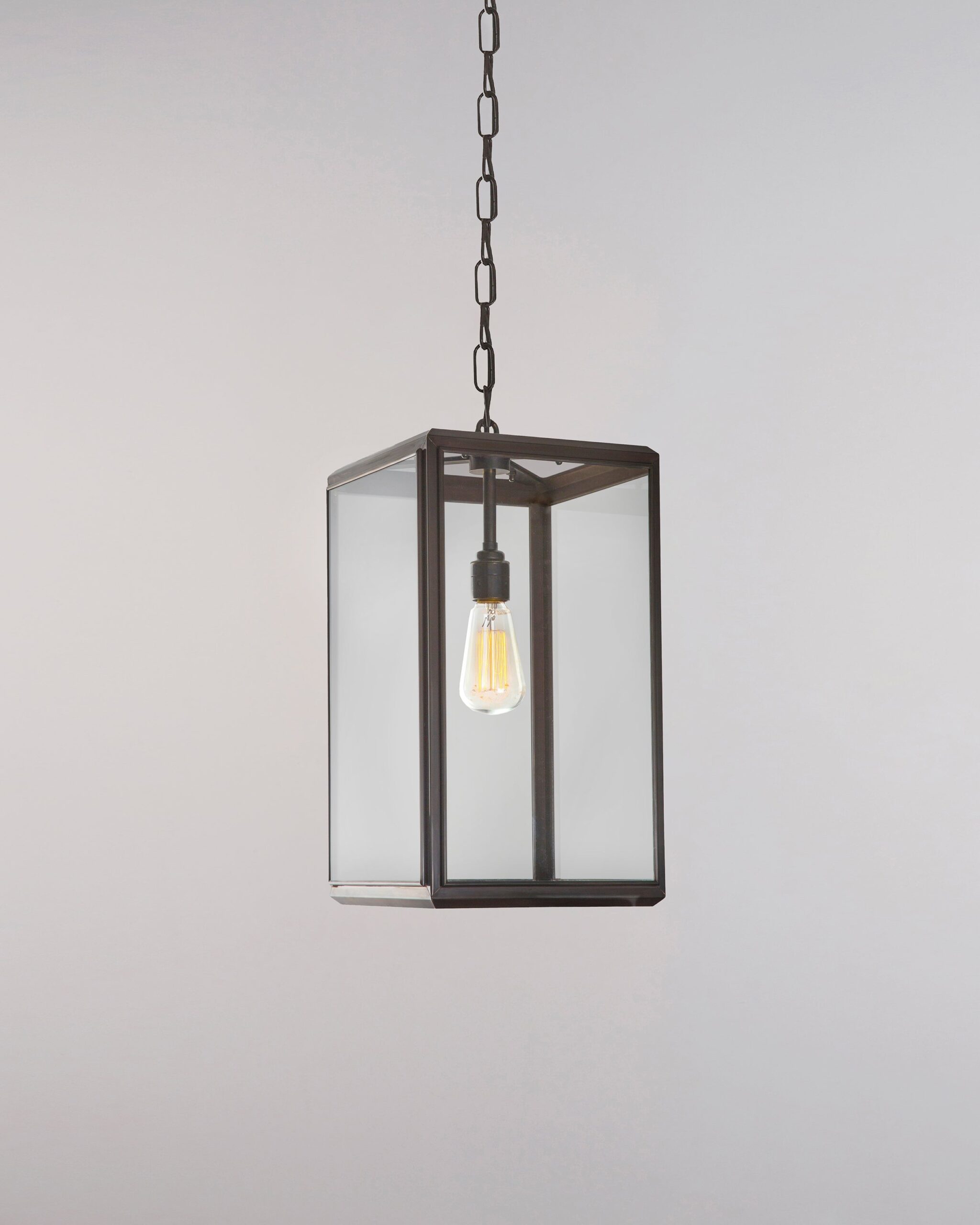 The Hazel Small Indoor Pendant embodies the classic lantern form, casting a soft, atmospheric light through its filament LED lamp —ideal for spacious living areas, lobbies, and entryways.