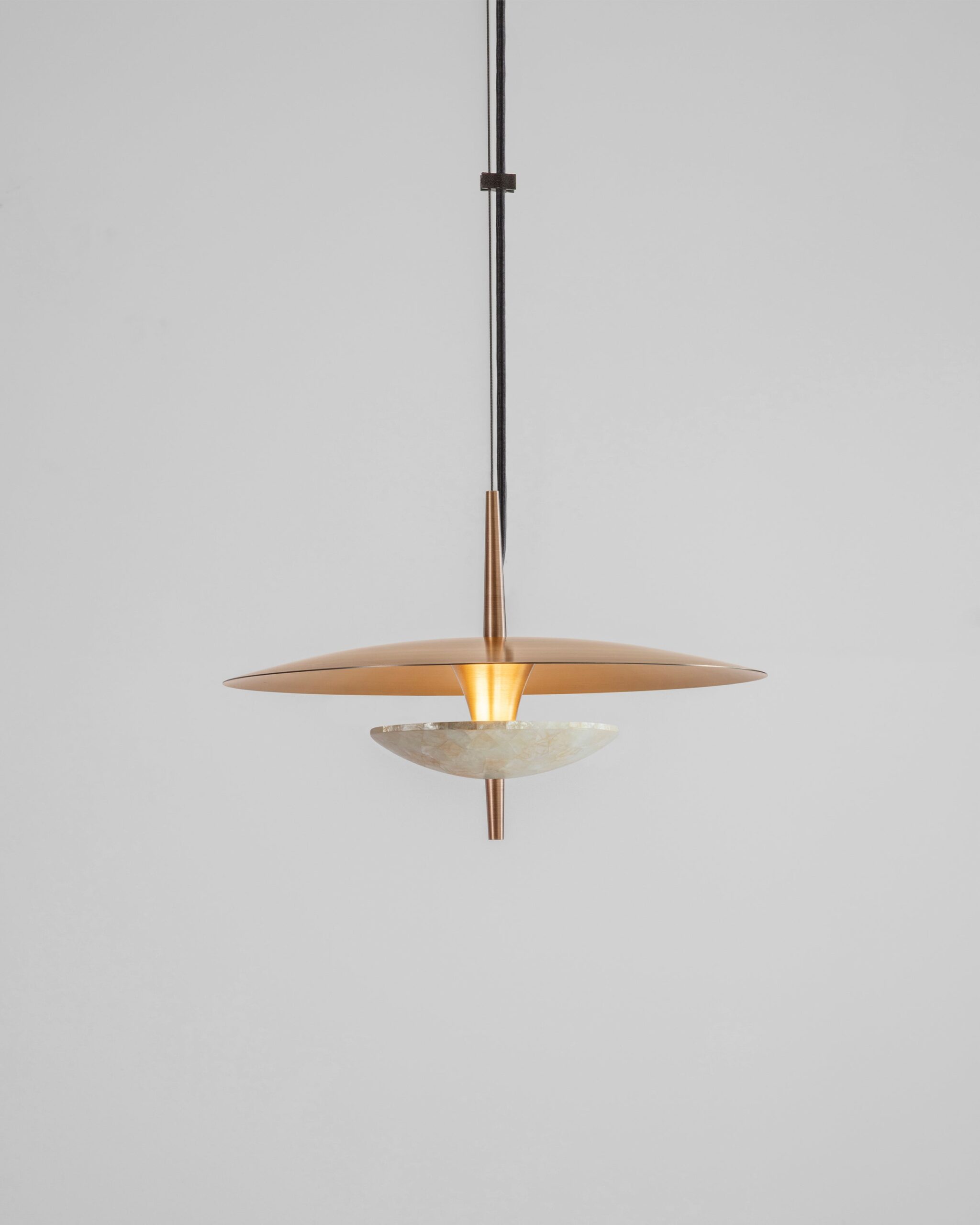 A limited-edition Luna 350 Pendant, reimagining sculptural form through the iridescent beauty of hand-applied Capiz shell inlay, crafted in collaboration with Nature Squared.