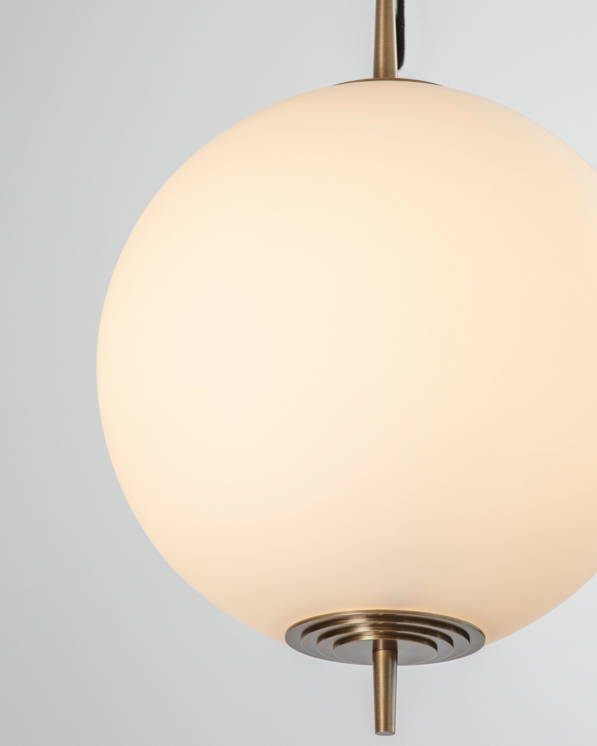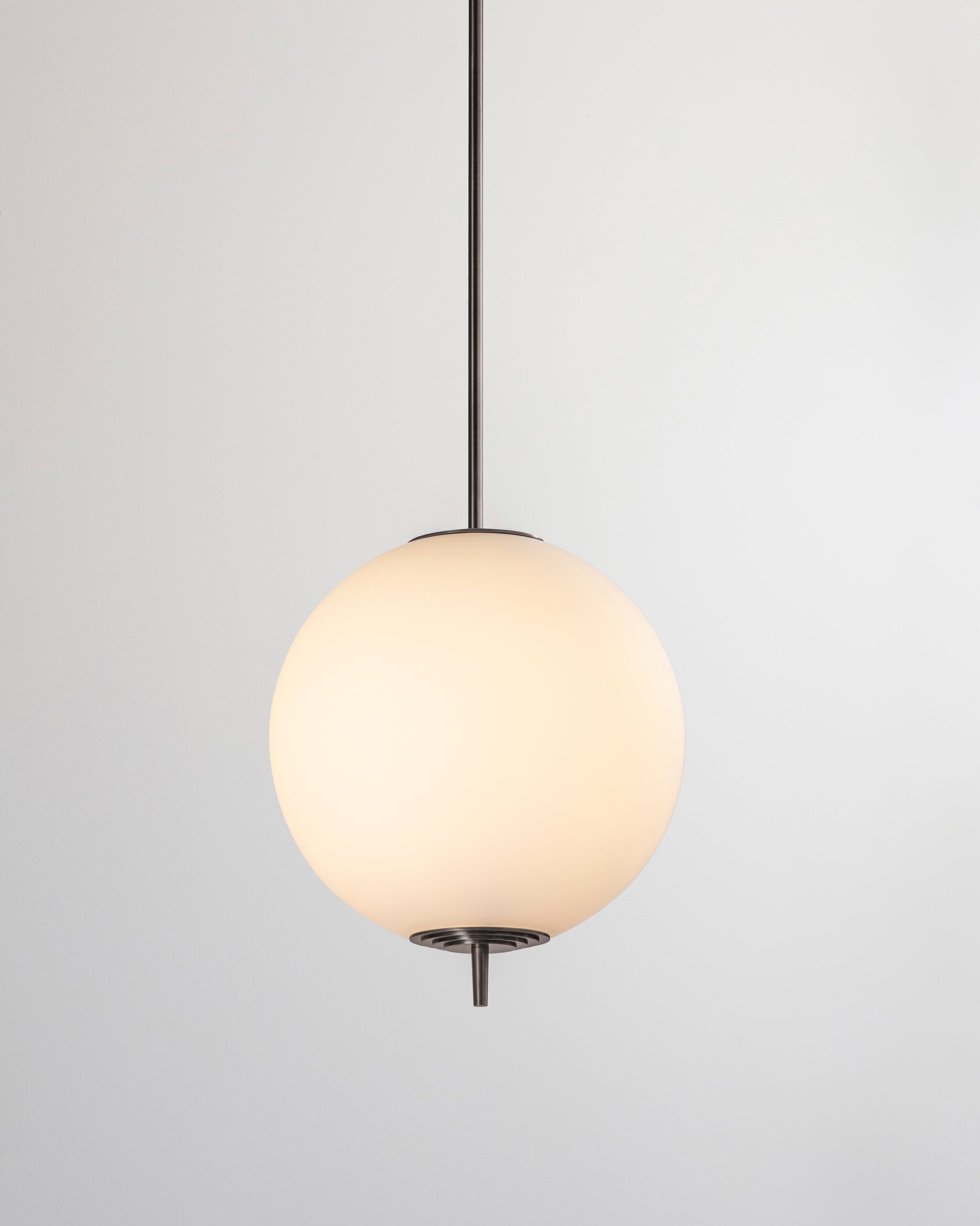 Crafted from mouth-blown, opaline glass, the Nova Globe Pendant emits a warm, ethereal glow, embodying a modernist aesthetic with a Deco edge.