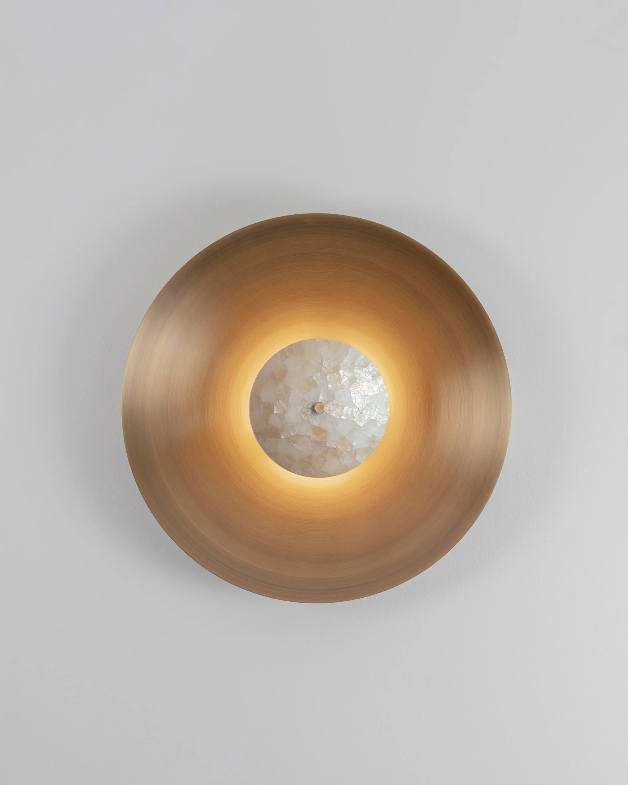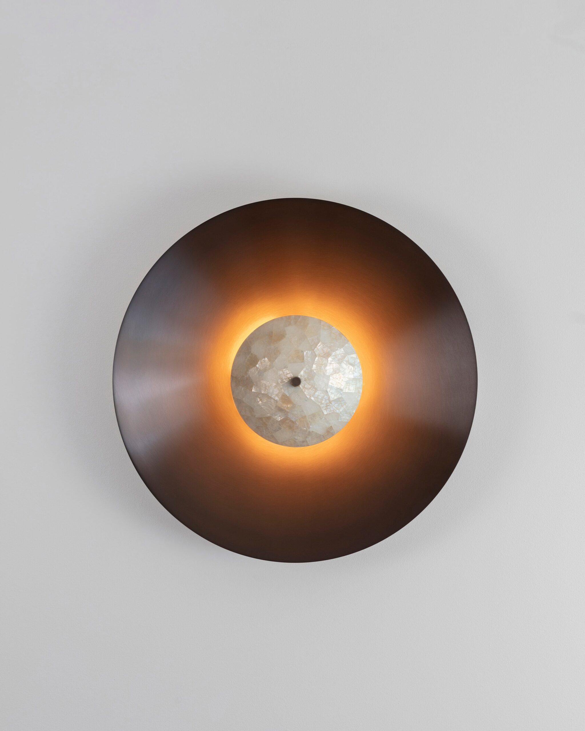 A limited-edition Luna Wall Light, reimagining sculptural form through the iridescent beauty of hand-applied Capiz shell inlay, crafted in collaboration with Nature Squared.