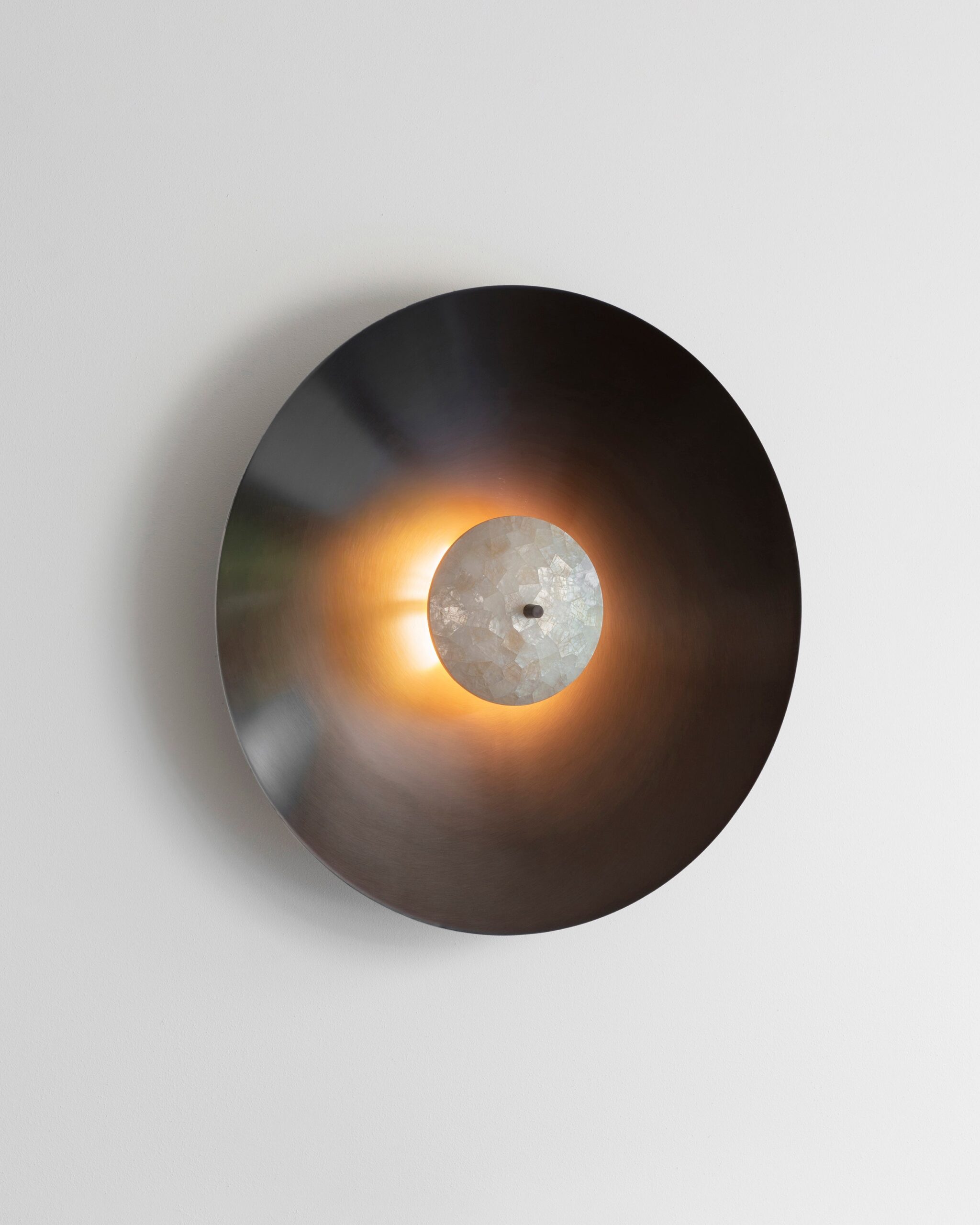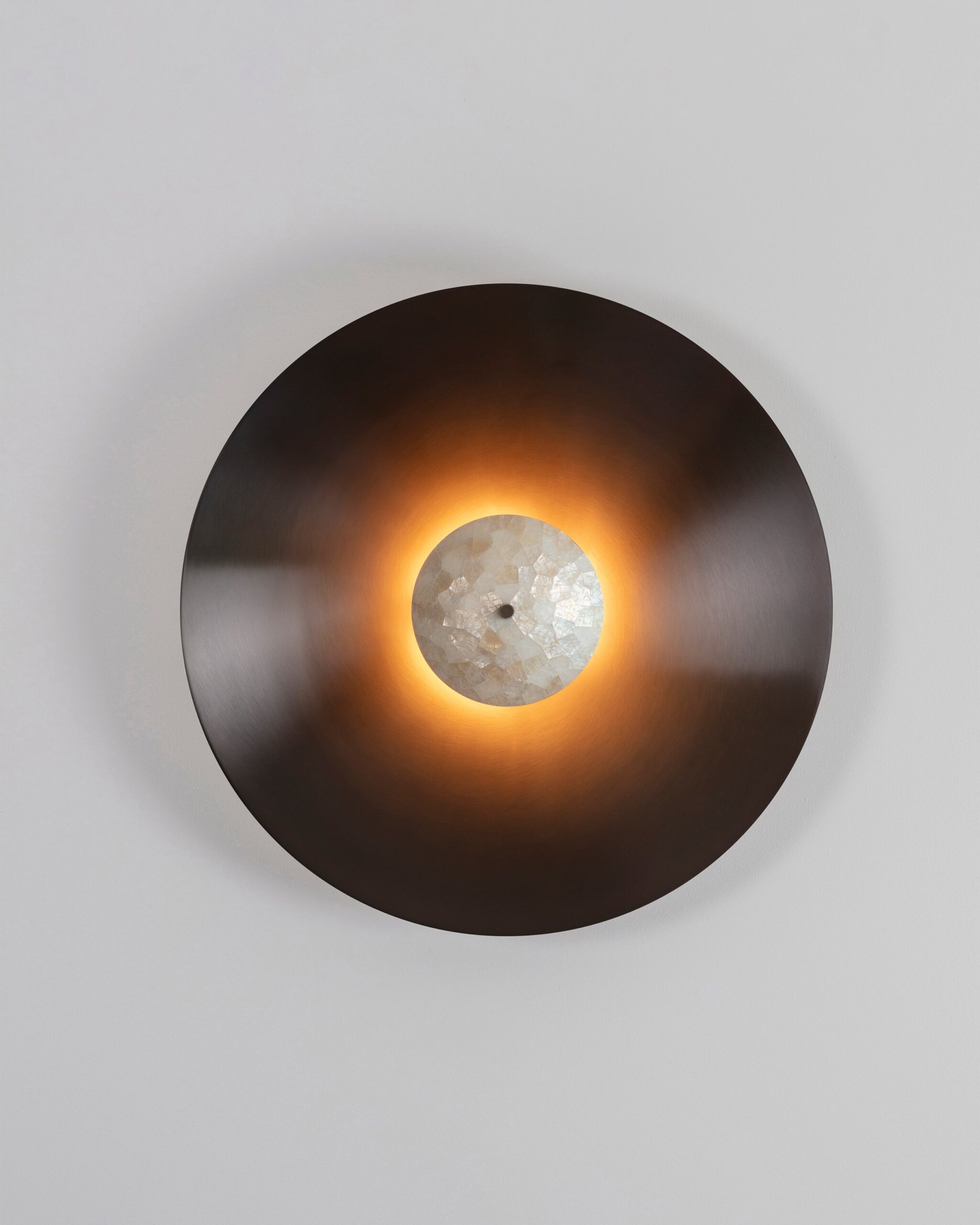 A limited-edition Luna Wall Light, reimagining sculptural form through the iridescent beauty of hand-applied Capiz shell inlay, crafted in collaboration with Nature Squared.