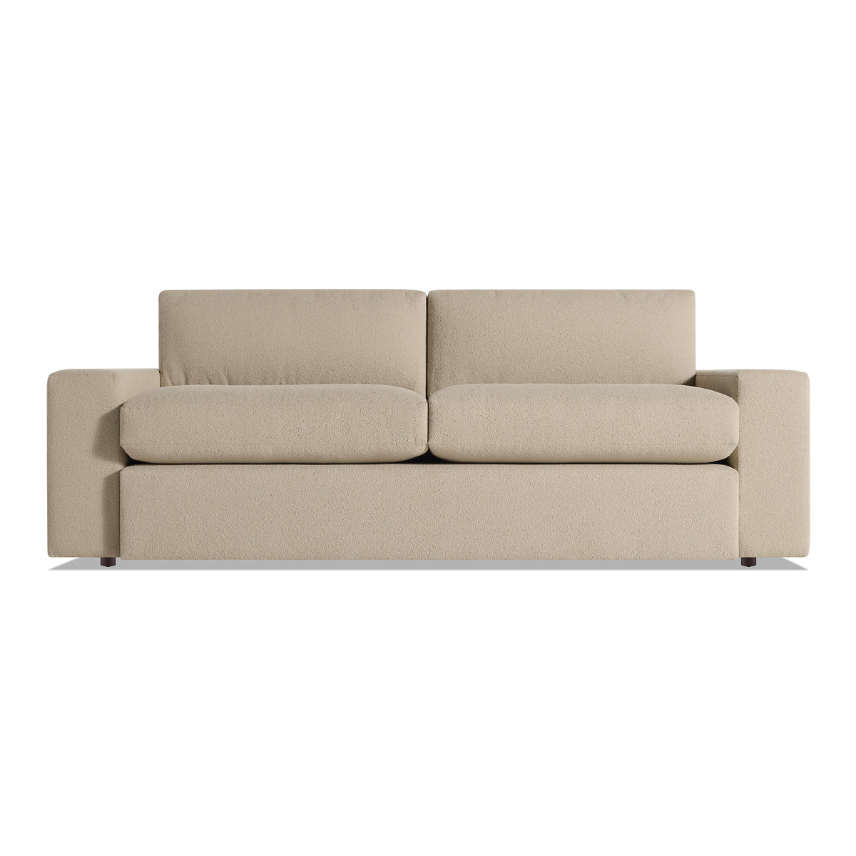 • Premium supportive foam cushions enveloped in fiber padding offer a soft, inviting sit that maintains both shape and support with time. A generous low-profile arm adds to the relaxed form.