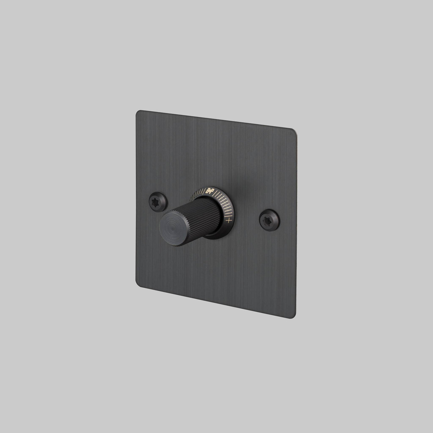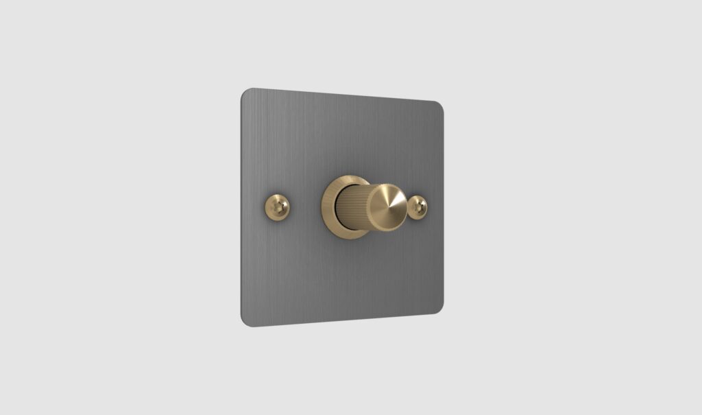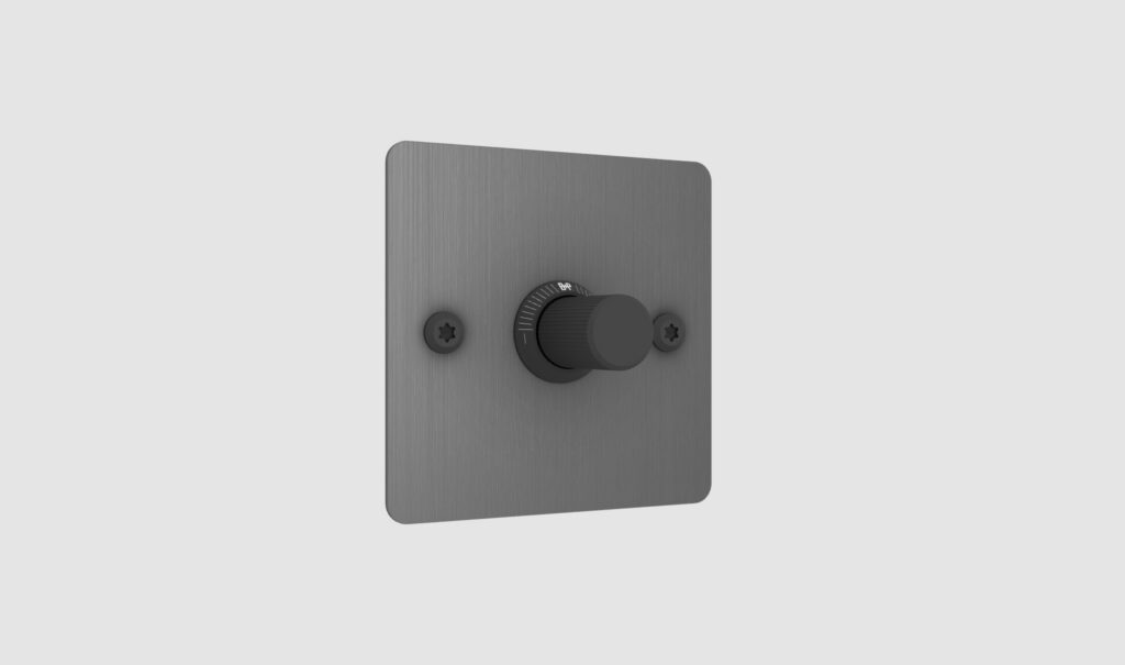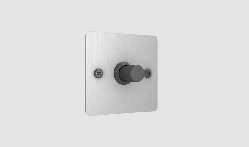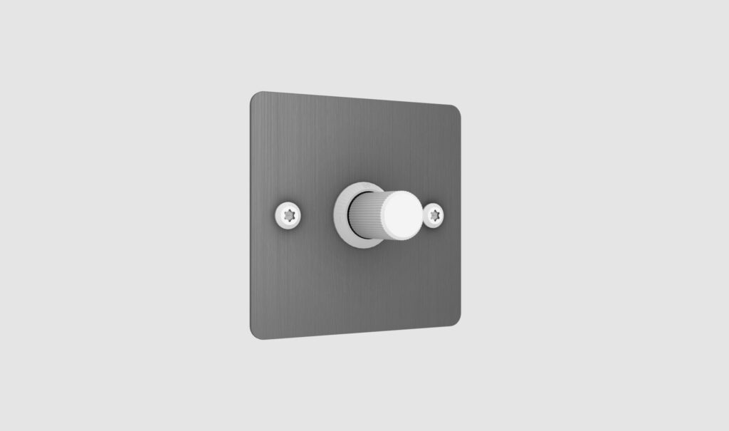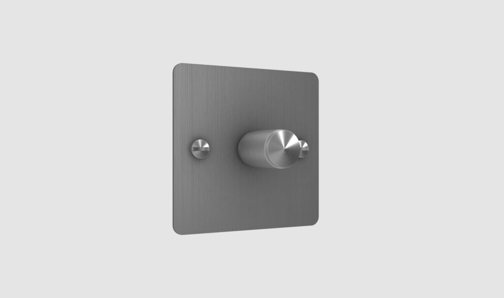 Solid metal switch plate with 1x dimmer module.