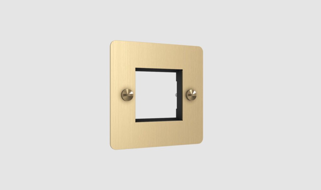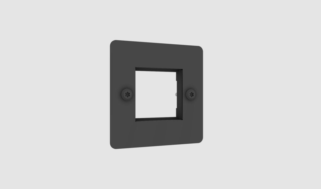 A modular UK 1G wall plate for 1x 45mm electricity module, made from